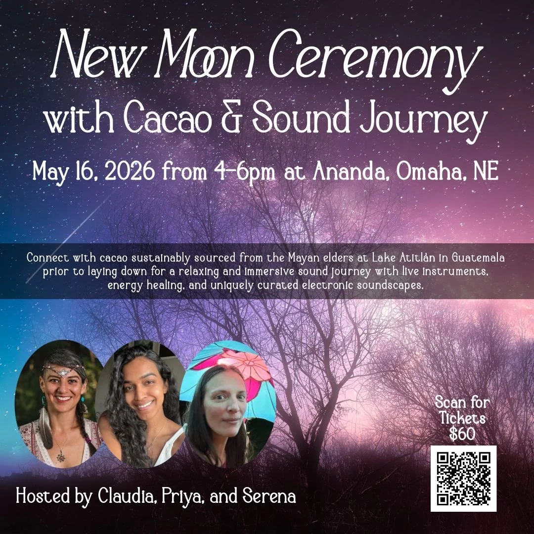 Saturday May 16th: New Moon Ceremony with Cacao & Sound Journey in Omaha, Nebraska.
