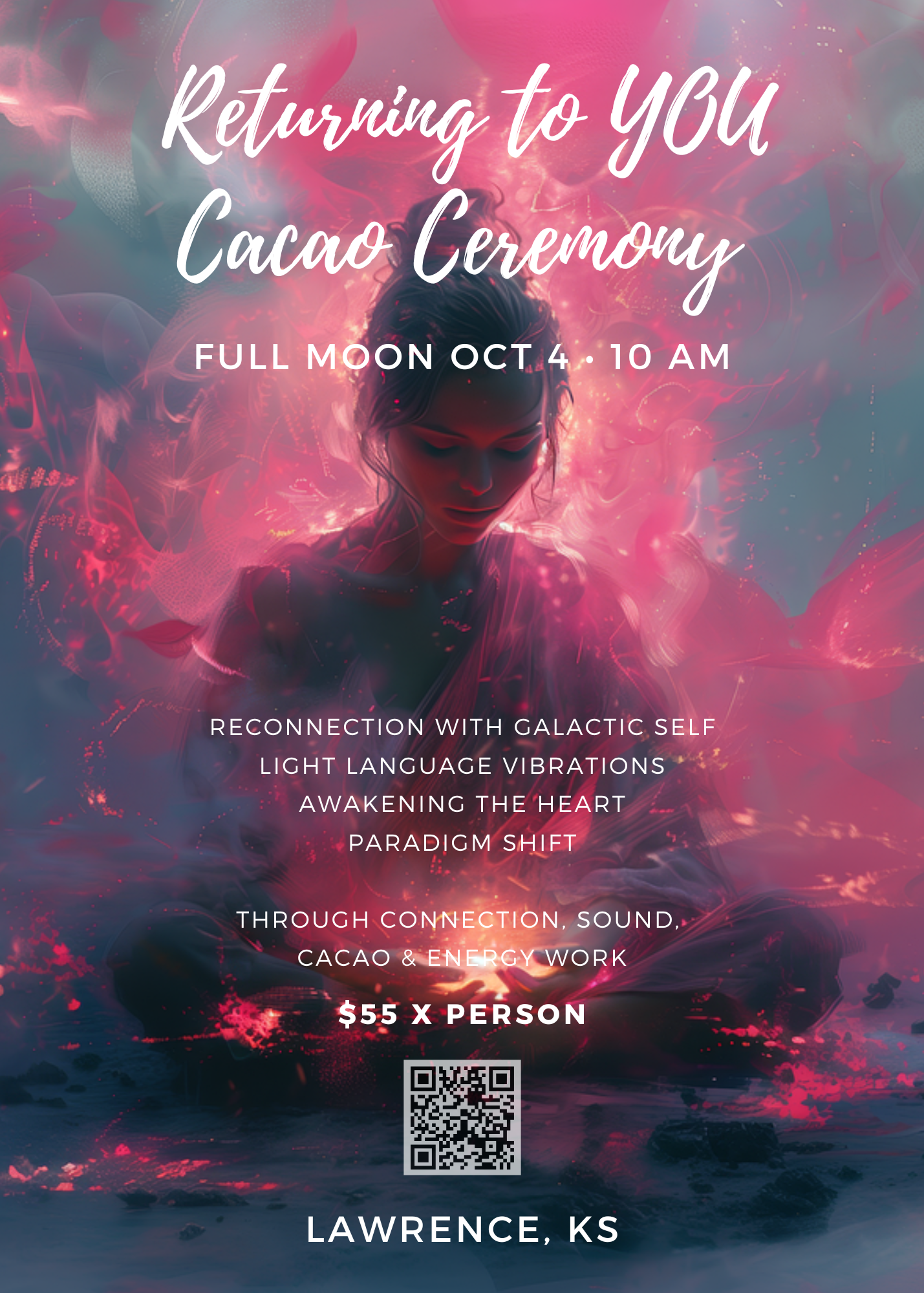Saturday November 1st: Full Moon Cacao Ceremony in Lawrence, Kansas. Theme: TBF (To be felt)